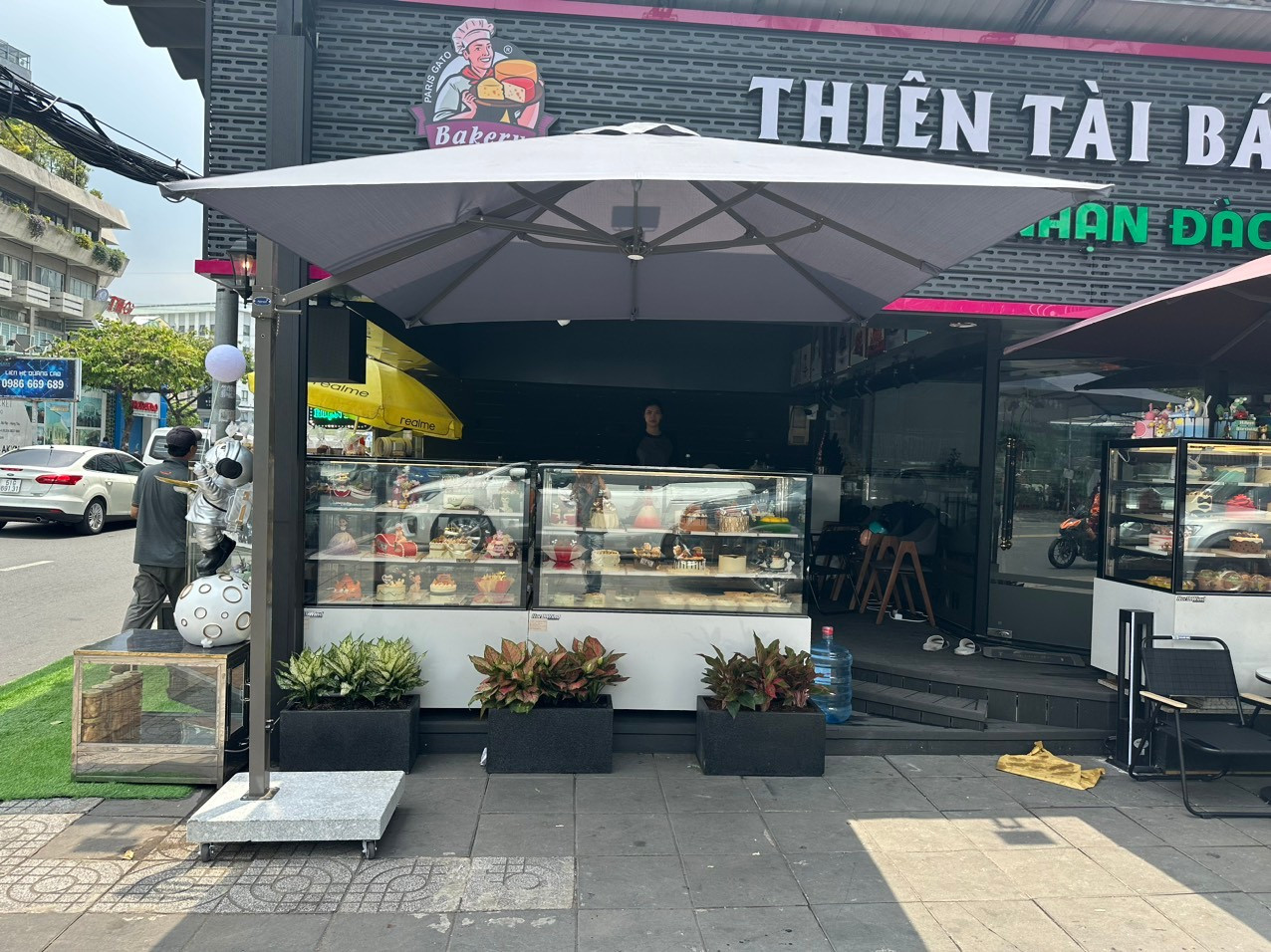 - Đế dù làm bằng đá granite tự nhiên cao cấp với vẻ sang trọng, đẳng cấp cùng khả năng đứng vững cao dù trời mưa gió.
