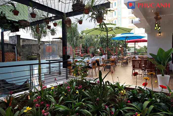 TRANG TRÍ QUÁN CAFE SÂN VƯỜN NHỎ ẤN TƯỢNG